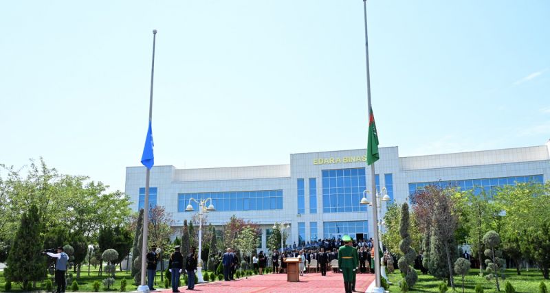 مراسم با فضای تشریفاتی و اجرای ارکستر نظامی ادامه یافت و در پایان، پرچمهای ترکمنستان و سازمان ملل متحد به نشانه اختتامیه رسمی این رویداد پایین کشیده شد.